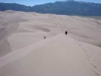 The view of 750 ft tall dunes was spectacular at the sunrise.